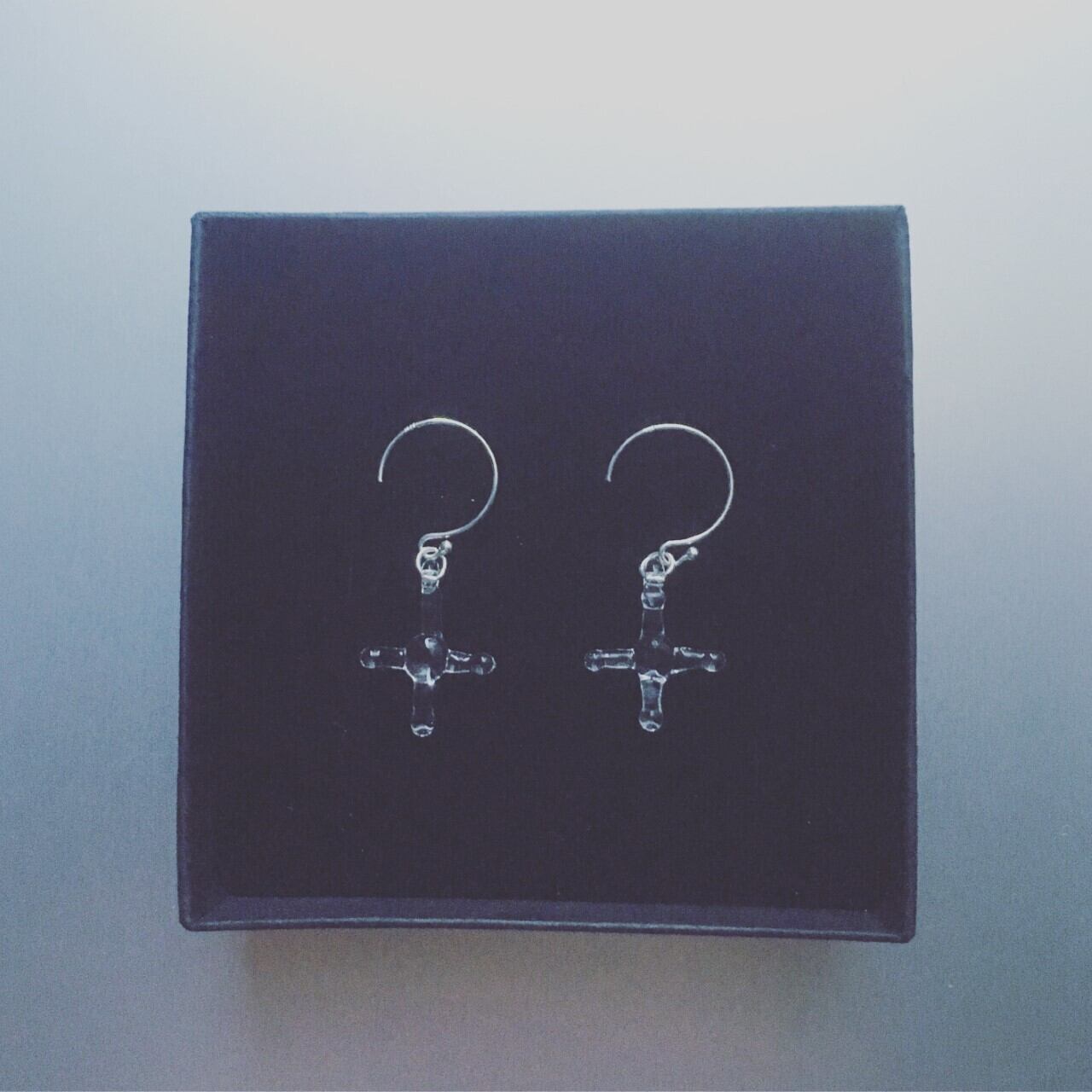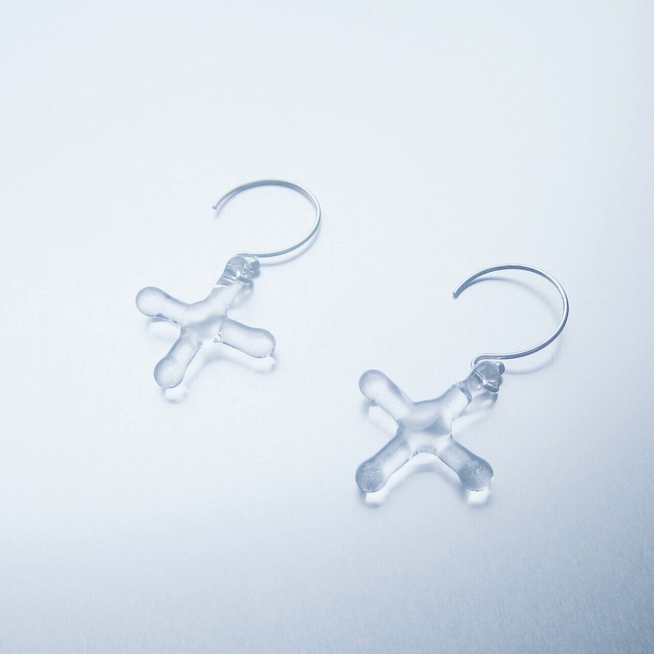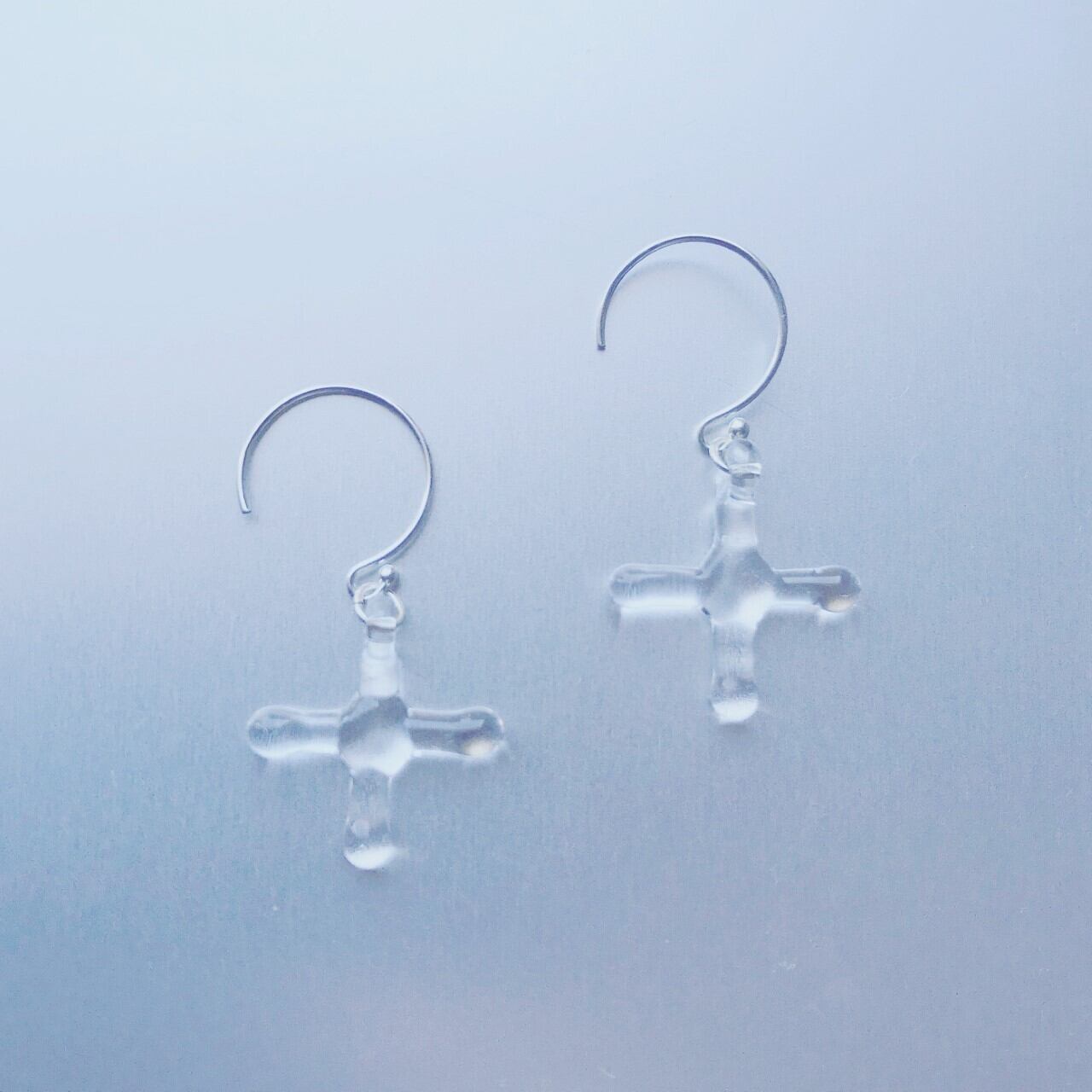 透明のクロスモチーフのさりげなくゆれるピアスです。