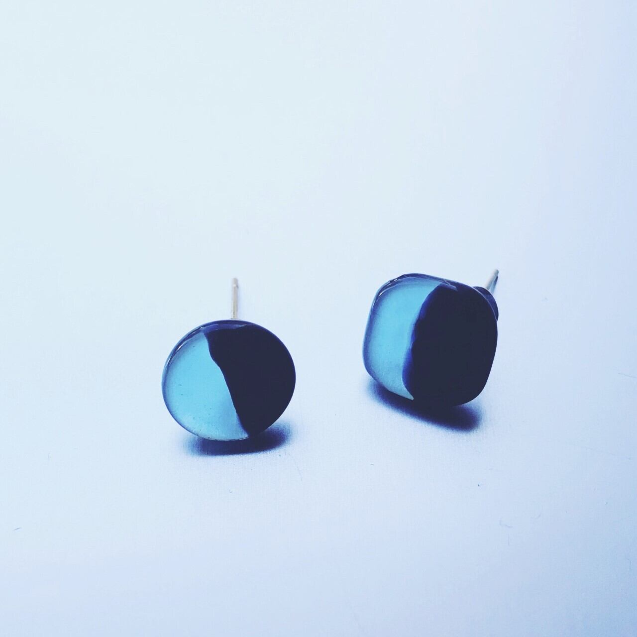 落ち着いたグリーンと不透明ブラックの二面性をコンセプトにしたスタッドタイプのアシンメトリーのピアス。